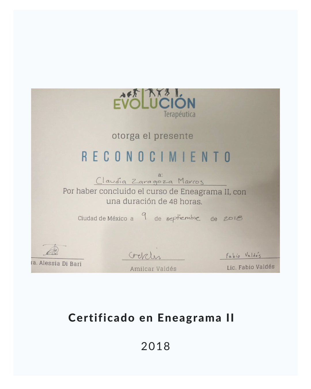 - Certificada como Health Coach (coach de la salud y el bienestar integral) en el Instituto Integrativo de Nutrici贸n en Nueva York. E.U.A., 2012.