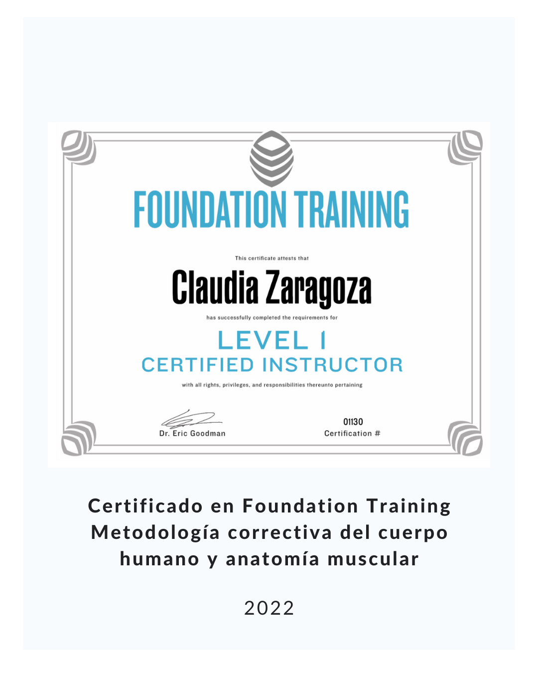 - Certificaci贸n de Foundation Training Metodolog铆a correctiva del cuerpo humano y anatom铆a muscular por FT Institute, 2022.