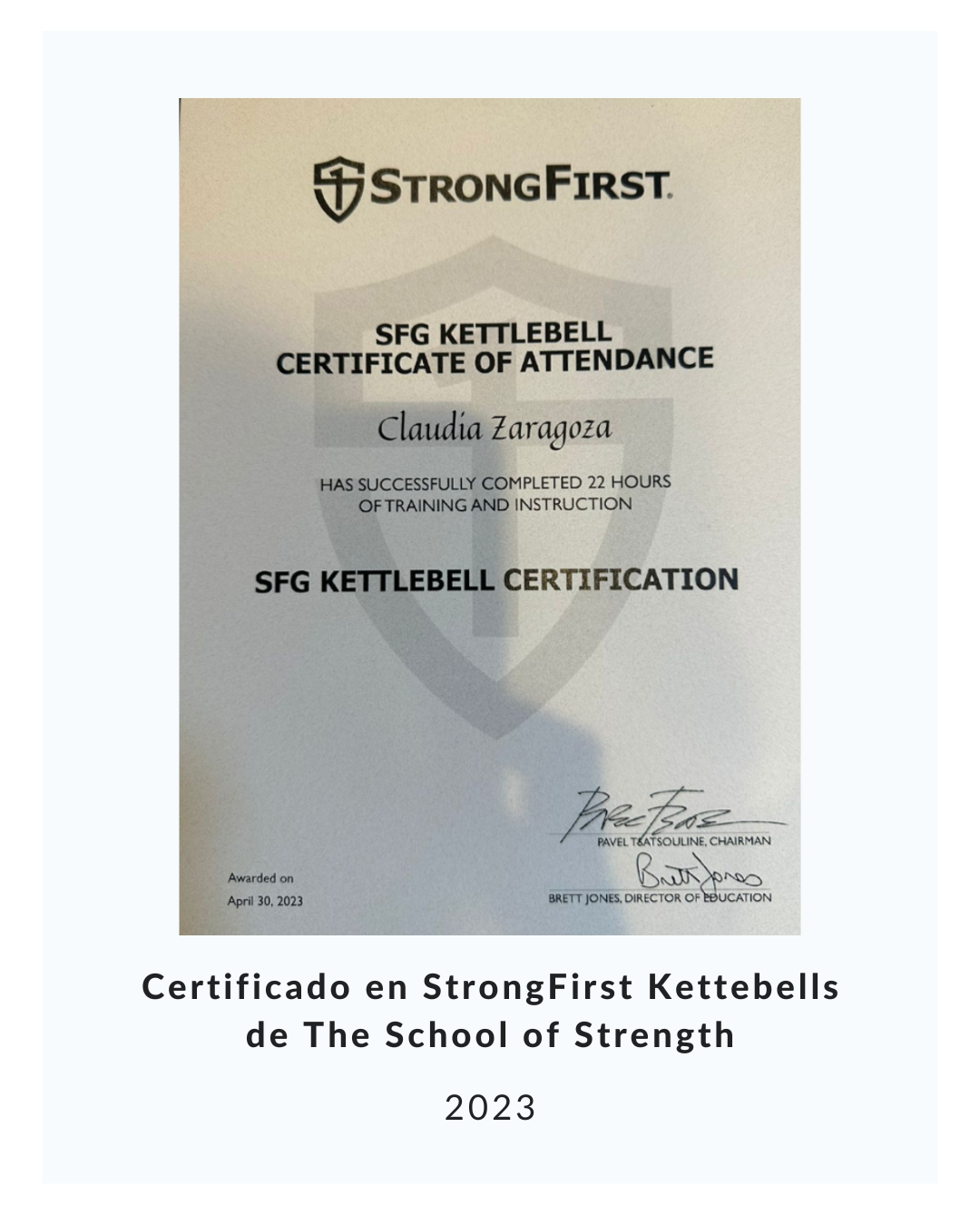 - Certificaci贸n StrongFirst Level I Kettebells de The School of Strength, Abril 2023.聽